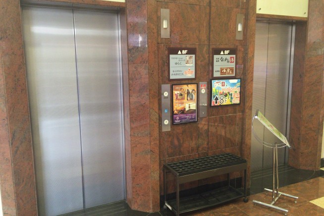 8階でエレベーターを降りるとすぐに靴箱が左手に見えますので、靴を脱ぎましょう。